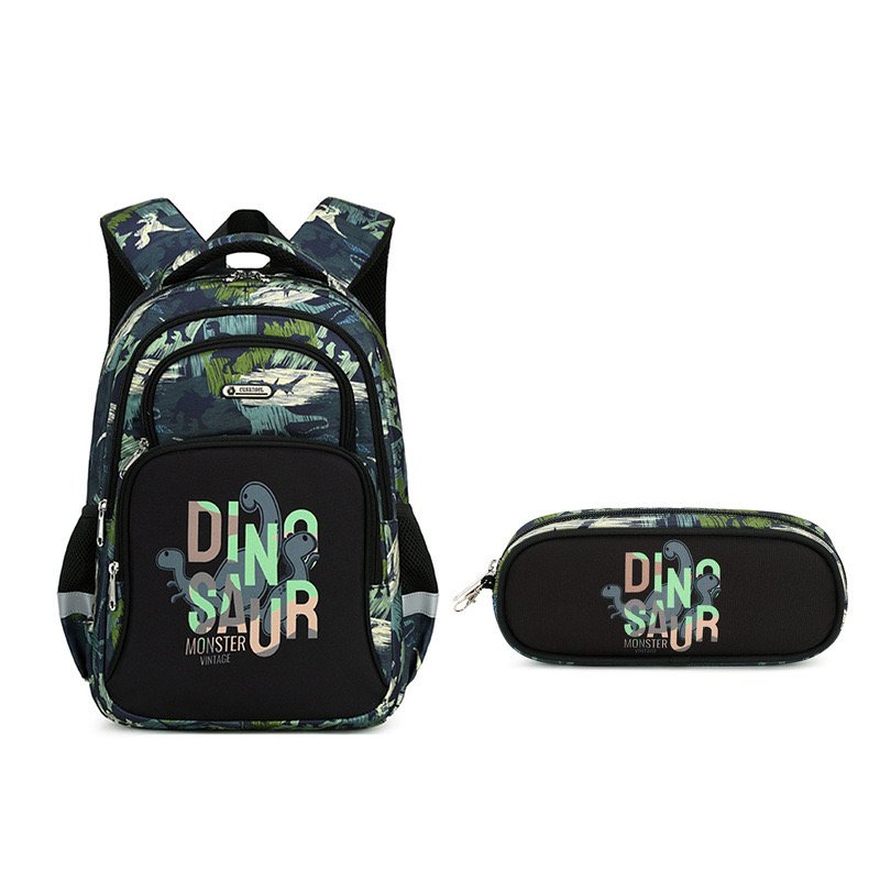Make school days more adventurous with our Camouflage Dinosaur Waterproof Backpack Set—a fun, durable, and practical choice for young learners. This 3-in-1 set includes a full-sized backpack, a matching lunch bag, and a pencil case, all featuring a cool dinosaur design with a camouflage twist. Crafted from high-quality polyester fiber, it’s waterproof, easy to clean, and machine washable, making it perfect for active kids in grades 1 to 6.